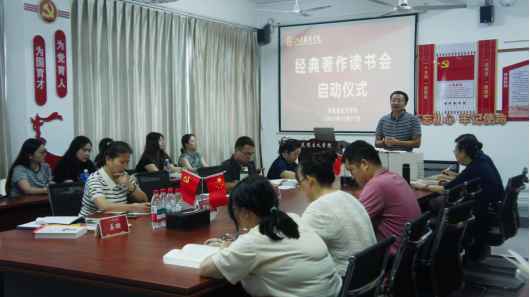 (马克思主义学院 讯)为加强思政课教师队伍建设,夯实教育教学根基,拓展理论视野,涵养学术底蕴,2025年10月17日下午,马克思主义学院在主教学楼240会议室举行“经典著作读书会”启动仪式。学院领导班子成员、思政课教师共聚一堂一起开启读书之旅,仪式由学院院长肖杰主持。