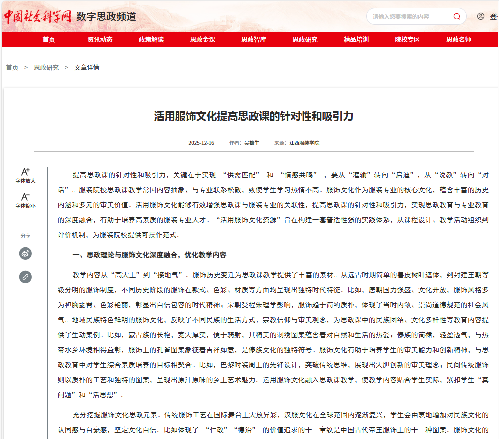 文章链接:活用服饰文化提高思政课的针对性和吸引力-数字思政频道-数字思政频道