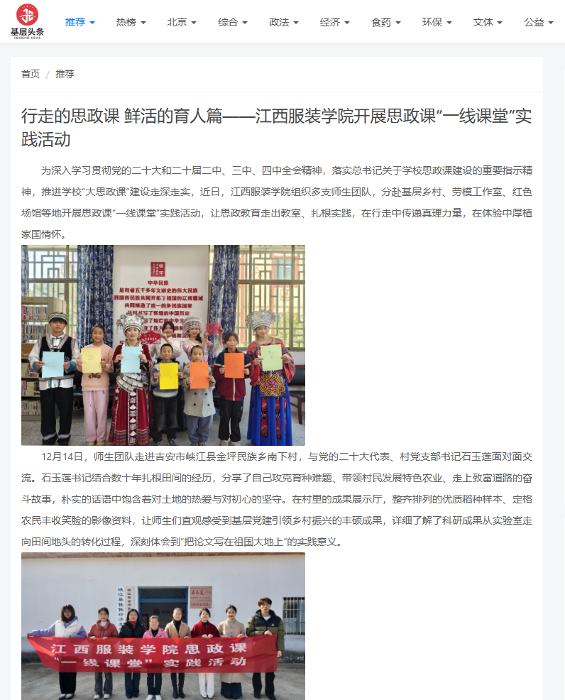 基层头条:行走的思政课 鲜活的育人篇——江西服装学院开展思政课“一线课堂”实践活动