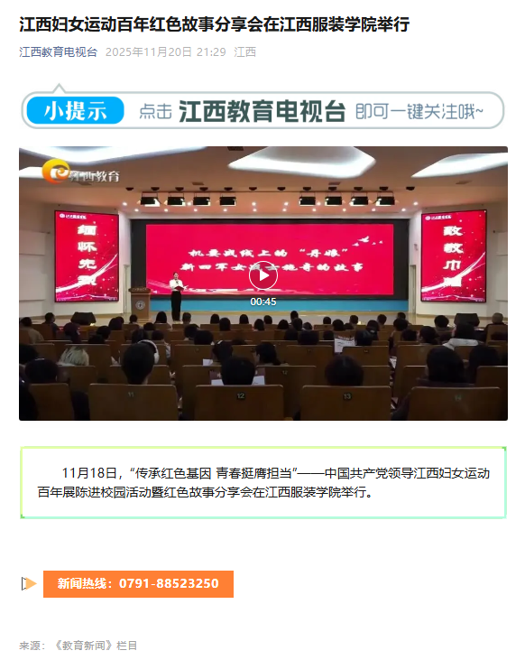 江西教育电视台:江西妇女运动百年红色故事分享会在江西服装学院举行