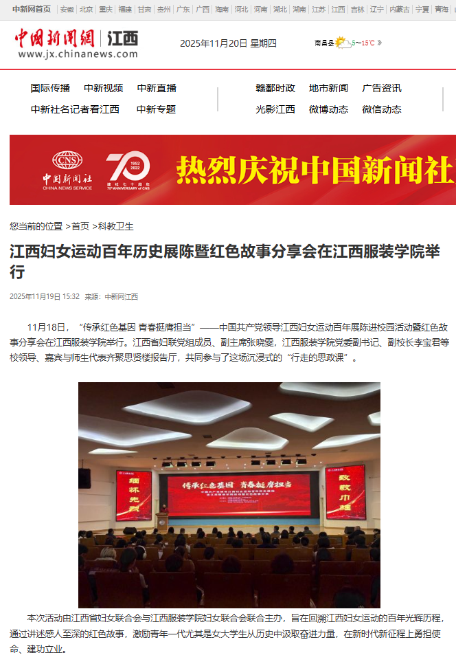 中国新闻网:江西妇女运动百年历史展陈暨红色故事分享会在江西服装学院举行