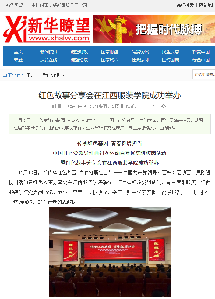 新华瞭望:传承红色基因 青春挺膺担当——中国共产党领导江西妇女运动百年展陈进校园活动暨红色故事分享会在江西服装学院成功举办