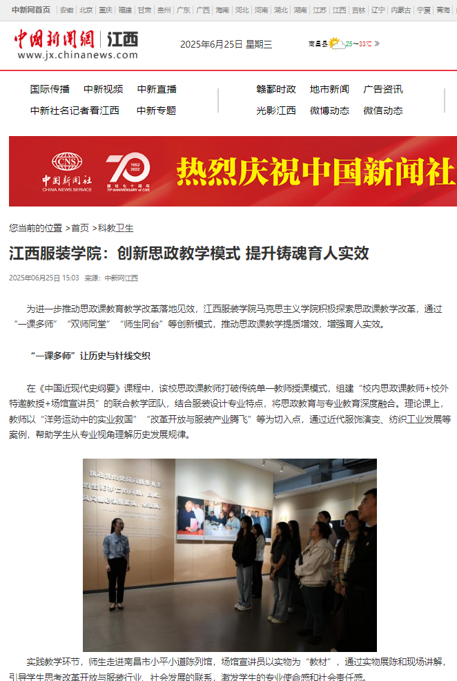 中国新闻网:江西服装学院:创新思政教学模式 提升铸魂育人实效