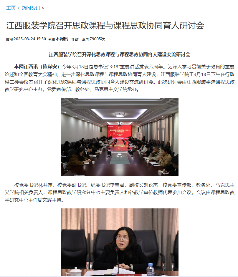 新华瞭望:江西服装学院召开思政课程与课程思政协同育人研讨会