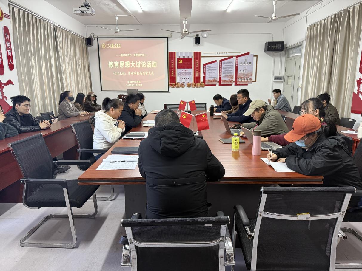 (马克思主义学院 讯)11月28日下午,马克思主义学院在主教学楼240会议室召开教育思想大讨论活动(第三期)。学院领导班子成员及各教研室全体思政课教师参加会议,会议围绕“推动学校高质量发展与提升人才培养质量”主题展开研讨。会议由学院院长肖杰主持。 会上,肖杰院长作了专题辅导报告,系统阐述习近平总书记关于教育的重要论述核心要义,并结合党的二十届四中全会公报对思政课建设的部署要求,为学院发展定向领航。 肖杰同志强调,思政课是落实立德树人根本任务的关键课程,马克思主义学院必须坚守“马院姓马,在马言马”的鲜明导向,把政治标准贯穿办学治院全过程。他指出,习近平总书记关于“培养什么人、怎样培养人、为谁培养人”的根本之问,是思政教育的永恒课题;党的二十届四中全会提出“促进思政课堂和社会课堂有效融合”的部署,为新时代高校思政教育指明了实践路径,这既是对马克思主义“知行统一”育人理念的传承,更是破解当前高校思政教育“两张皮”问题的关键举措。 辅导报告后,与会教师围绕研讨主题各抒己见、畅所欲言。在谈及马克思主义学院在学校特色发展中的定位时,王志军博士提出,应该加强校内协同,要打通交流合作壁垒,在学生社团、赛事活动中马院教师应积极参与,在推动思政课程与课程思政同向同行时,要形成思想共识,探索有效融通新途径。要将思政教育融入服装设计的审美培育、时尚产业的责任担当之中,培养既懂专业技艺又明家国大义的时代新人。关于“新时代思政课教师如何成为优秀江服人”,思政课青年教师魏园园提出,要做“懂时尚的思政人”,既要深耕马克思主义理论沃土,又要了解服装行业发展动态,要挖掘专业教育、行业发展中的鲜活素材,让思政课既有理论高度,又有行业温度。 会上,与会教师还就学院“十五五”规划编制提出自己的想法与建议。一是要主动拥抱人工智能,创新更多可感可及的思政案例,让教学内容更接地气;二是要完善“思政课教师+专业课教师+行业专家”协同育人机制,打破教育资源壁垒;三是要构建“实践—提炼—教学”反馈链条,将社会调研成果转化为教学议题,提升育人精准度。 肖杰在总结时指出,此次教育思想大讨论凝聚了共识、明晰了方向。他强调,马院全体教职工要把思想和行动统一到学校高质量发展大局中,既当好“理论传播者”,又做好“发展参谋者”,以高质量思政教育赋能学校特色发展,为培养堪当民族复兴大任的时代新人贡献马院力量。