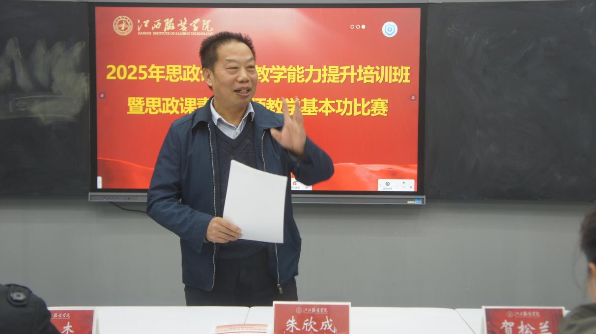 (马克思主义学院 讯)12月6日,马克思主义学院在主教学楼235教室举办2025年思政课教师教学能力提升培训班暨青年教师教学基本功比赛。活动邀请江西财经职业学院马克思主义学院朱欣成教授进行培训指导,与学院院长肖杰、副院长贺松兰,以及于延晓教授、王灵芝共同组成专家评审团,23位青年教师同台竞技、以赛促学。 比赛正式开始前,肖杰院长发表动员讲话,并对此次活动的总体安排进行了介绍。他指出,此次活动既是技艺比拼的舞台,更是互学互鉴的平台。希望大家赛出风格、比出水平,以过硬本领扛起立德树人的时代重任。 比赛环节,23位青年教师按照抽签顺序依次登台,围绕马克思主义中国化最新成果、新时代社会发展热点等主题展开授课。有的教师以时政新闻为切入点,用鲜活案例诠释理论内涵;有的教师以互动提问为抓手,用启发引导激发思考热情;有的教师以板书设计为亮点,用逻辑框架梳理知识体系,充分展现了青年思政课教师扎实的理论功底与多样的教学风格。 全部参赛教师完成展示后,朱欣成教授进行集中点评与培训指导。他首先对23位教师的表现逐一复盘,既肯定了大家在教学设计中紧扣时代脉搏、贴近学生实际的亮点,也指出了教师在内容取舍、节奏把控上的改进方向,点评精准到位、干货满满。 朱欣成教授在培训指导中强调,“专题选择要‘准’,需紧扣课程要求,对接学生需求;内容把握要‘实’,需深挖理论精髓,融入实践案例;教学设计要‘巧’,需善用情景创设,激活课堂氛围;语言表达要‘活’,需摒弃空洞说教,多用家常话语。比赛有技巧,但育人无捷径——理论功底是‘压舱石’,要常学常新强根基;学情把握是‘导航仪’,要知生懂生明方向;情感投入是‘催化剂’,要以情动人传温度。希望大家以此次活动为契机,把‘赛场上的标准’转化为‘课堂上的常态’,让思政课既有理论高度,又有情感温度,更有实践深度,真正成为学生喜爱、终身受益的‘金课’。” 综合评分结果,评选出一、二、三等奖。其中,黄月君、徐小年两位老师荣获一等奖,专家评委为获奖教师颁发荣誉证书并合影留念。 此次活动以“以赛代训、以评促改、以学促优”为目标,既为思政课教师搭建了展示自我、交流学习的平台,也通过专家指导精准破解了教学实际中的难点问题,有效提升了教师的教学能力与育人素养。下一步,马克思主义学院将持续深化思政课教育教学改革,常态化开展教学研讨、技能比拼、专题培训等活动,不断提升思政课教师教育教学水平,推动“大思政课”建设走深走实,为培养担当民族复兴大任的时代新人筑牢思想根基。
