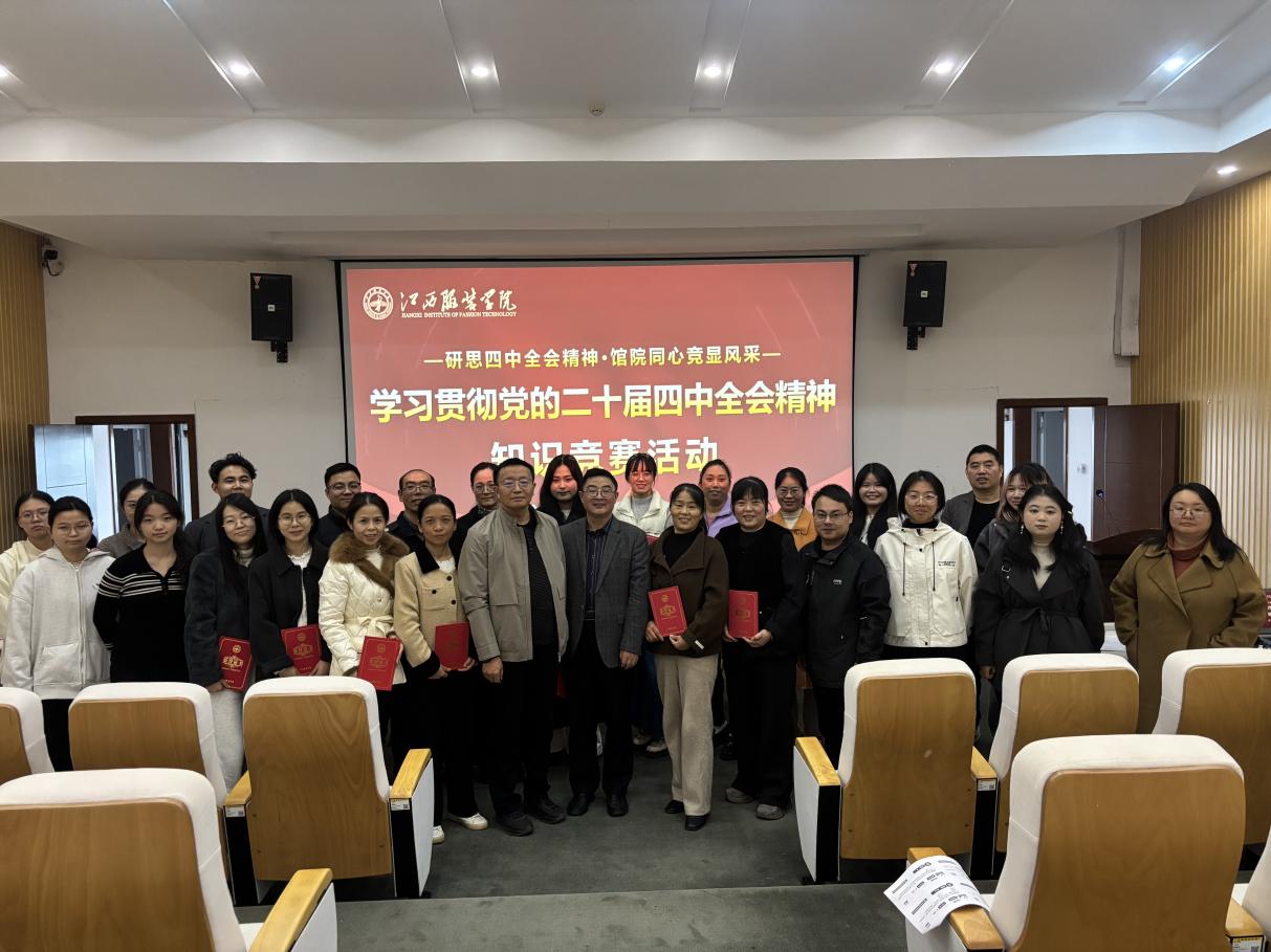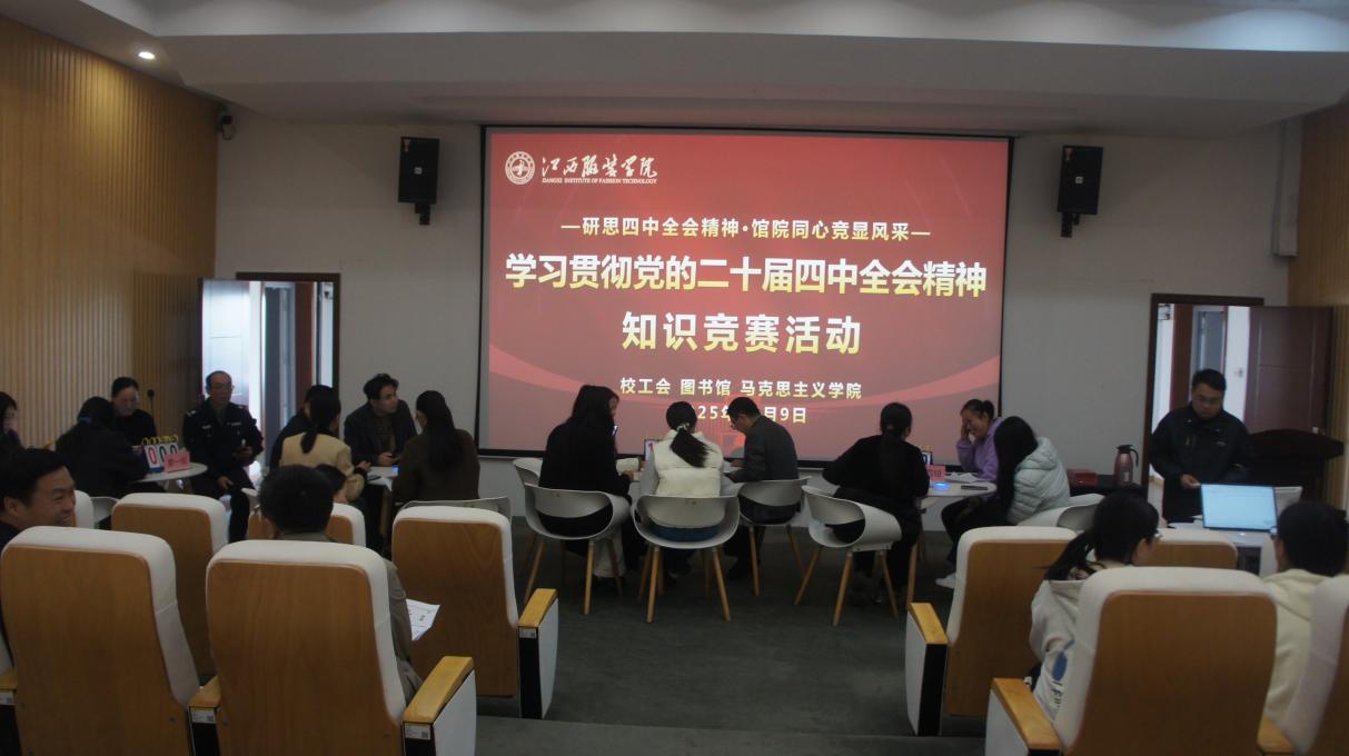 (马克思主义学院 讯)为深入学习贯彻党的二十届四中全会精神,推动理论学习走深走实,同时打破馆院壁垒、凝聚协作合力。12月9日,在校工会的悉心指导与大力支持下,图书馆分工会与马克思主义学院分工会联合主办的学习贯彻党的二十届四中全会精神知识竞赛活动在图书馆三楼视频视听厅顺利举行。马克思主义学院院长肖杰担任本次比赛裁判并全程指导,近60名师生参加此次活动,共同感受以赛促学、以学促行的浓厚氛围。 党的二十届四中全会为新时代新征程党和国家事业发展指明了方向、提供了遵循。此次知识竞赛活动是图书馆与马克思主义学院落实全会精神学习要求的创新举措,旨在以竞赛为载体,帮助两部门教职工系统掌握全会核心要义,深化思想认识,同时搭建跨部门交流平台,增进教职工之间的沟通协作,营造“互帮互学、协同共进”的良好校园生态。 比赛前期,两部门精心筹备,广泛动员。图书馆与马克思主义学院各选派8名教师,混合组成4支参赛队伍。竞赛内容紧扣党的二十届四中全会报告核心要点,设置小组必答题、抢答题、风险题三个环节,全面考察参赛选手的理论储备、反应能力与团队协作水平。现场还设置了观众答题互动环节,与会师生共同参与知识竞赛,现场精彩纷呈,掌声不断。 赛场上,气氛紧张热烈又不失活泼有序。在必答题环节,各队选手沉着冷静、应答如流,展现出扎实的理论功底,分数交替上升,难分伯仲;抢答题环节,随着裁判一声“321开始抢答”,选手们反应迅速、按下抢答器,精彩的回答赢得现场观众阵阵掌声;风险题环节则考验着团队的策略与勇气,各队根据自身分数情况谨慎抉择,既有稳扎稳打的保守选择,也有果断出击的大胆尝试,将比赛氛围推向高潮。马克思主义学院院长肖杰对各小组答题情况进行点评,既肯定了选手们的理论素养,也补充了相关知识点,让在场师生在观赛过程中同步学习、深化理解。 经过一个多小时的激烈角逐,比赛最终评选出一等奖、二等奖、三等奖及优秀奖各1名。马克思主义学院院长肖杰与图书馆馆长黄顺荣共同为获奖队伍颁发荣誉证书,现场响起热烈的祝贺掌声。 图书馆参赛教师表示:“这次竞赛不仅让我系统梳理了党的二十届四中全会精神的核心内容,更在与马克思主义学院老师的协作中感受到了跨部门合作的魅力。”。马克思主义学院老师则谈道:“图书馆教职工严谨细致的作风给我留下了深刻印象,这种‘以赛会友’的形式为我们搭建了很好的交流平台。” 此次知识竞赛活动的成功举办,不仅有效推动了党的二十届四中全会精神在教职工中的学习贯彻,更打破了部门间的壁垒,强化了团队凝聚力与集体归属感。下一步,图书馆与马克思主义学院将以此次活动为契机,进一步深化合作,探索更多跨部门学习交流模式,将学习成果转化为推动工作的强大动力,为学校高质量发展凝聚合力。