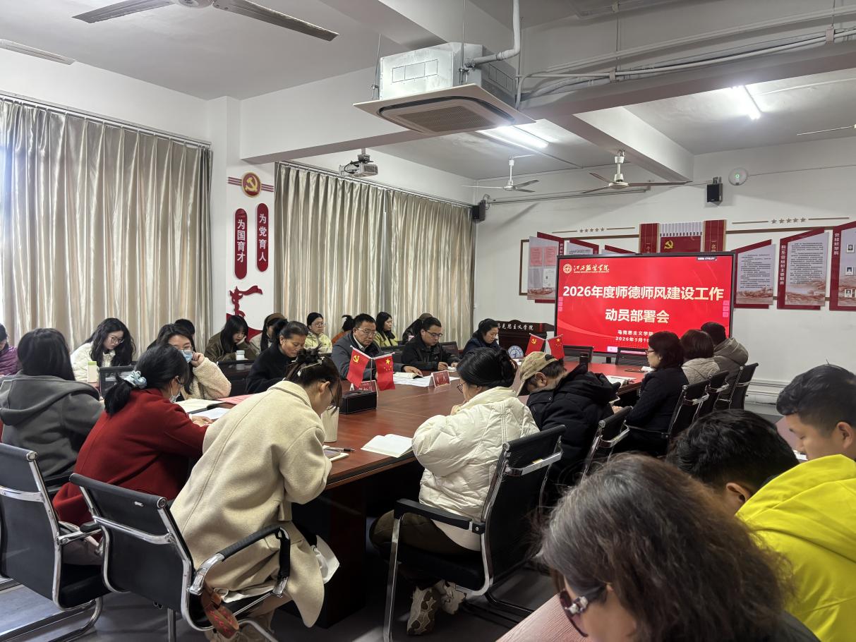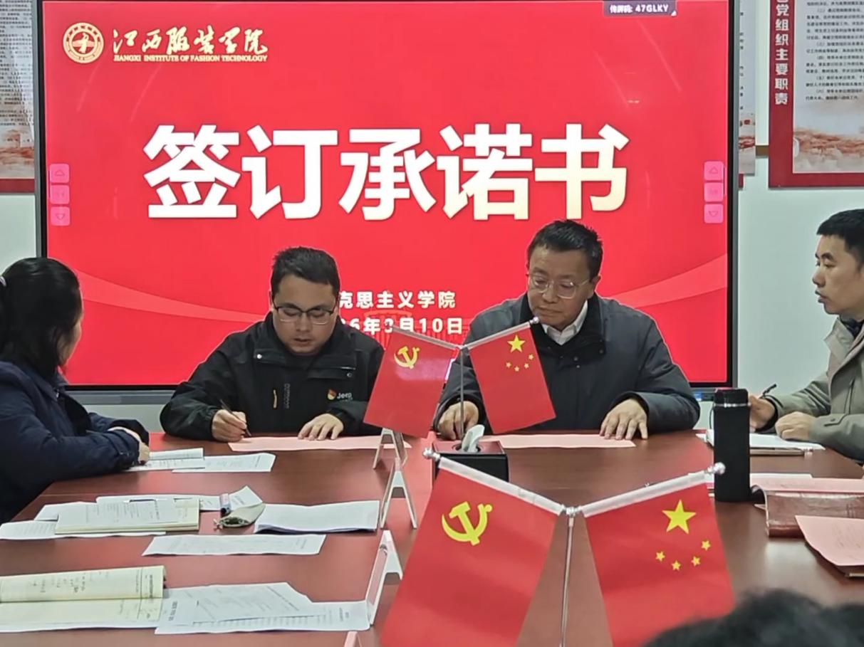 (马克思主义学院 讯)为深入贯彻落实全国教育大会精神,大力弘扬教育家精神,部署2026年度学院师德师风建设工作。2026年3月9日,马克思主义学院在主教学楼240会议室召开2026年度师德师风建设工作动员部署会。学院全体教职工参加会议,会议由党总支副书记陈洋安主持。 会上,陈洋安同志全面回顾总结了2025年度师德师风建设工作情况。他指出,过去一年,学院始终坚持党对教育事业的全面领导,以立德树人为根本任务,从健全完善师德师风建设体系、强化师德师风教育引导、严格落实意识形态责任、深化思政课教师队伍建设、优化分工协同推进等五个方面精准发力,实现了教学质量提升、科研赛事成果突破、教师主动尽责担当的良好局面,全年未发生任何师德失范问题,为学院平稳健康发展筑牢了师德根基。 随后,陈洋安同志从深化理论武装、强化业务培训、深化数字教学赋能、加强队伍建设、深化师德教育、发挥示范作用、加强人文关怀等七个方面对2026年师德师风建设工作作出全面部署。他强调,师德师风是立身之本、从教之基,是铸魂育人之魂、立德树人之根;要以教育家精神为引领,坚守育人初心、涵养师德正气,以严标准筑牢思想防线,以实举措夯实育人根基。 会上,全体教职工签订了《2026年师德师风建设工作承诺书》。在肖杰院长的领誓下,全体教职工举起右拳,庄严宣誓。 会上,思政课教师代表董婷婷、熊思伟分享了自己的工作感悟与体会。她们表示,深刻认识到师德师风是思政课教师的立身之本,要以教育家精神为指引,不断加强自身修养,深耕思政课堂,把师德要求内化于心、外化于行,用心用情上好每一堂思政课,努力成为学生成长路上的引路人。 学院院长肖杰在总结讲话中指出,2026年是“十五五”开局之年,是教育强国建设三年行动计划承上启下的关键之年,强国必先强教,强教必先强师,全国教育大会明确提出的教育家精神铸魂强师行动,为新时代教师队伍建设指明了方向、提供了遵循。他强调,学院要锚定立德树人根本任务,紧扣教育强国建设要求,以师德师风建设为抓手,把师德师风作为教师准入、职称评聘、评奖评优的首要标准,健全长效机制、强化日常监管、严抓责任落实,做到师德违规“零容忍”;要推动师德建设与思政课改革创新深度融合,把教育家精神融入课堂教学、科学研究、社会服务各环节,彰显马克思主义学院办学特色。他希望全体教职工牢记为党育人、为国育才使命,明大德、守公德、严私德,练师能、强师艺、铸师魂,既做传道授业解惑的“经师”,也做涵养德行、引领成长的“人师”,以高尚师德感染学生,以扎实学识启迪学生,以责任担当培育学生,为培养担当民族复兴大任的时代新人贡献力量。 此次动员部署会的召开,进一步统一了思想、明确了任务、凝聚了共识,为学院2026年师德师风建设工作的开展奠定了坚实基础。